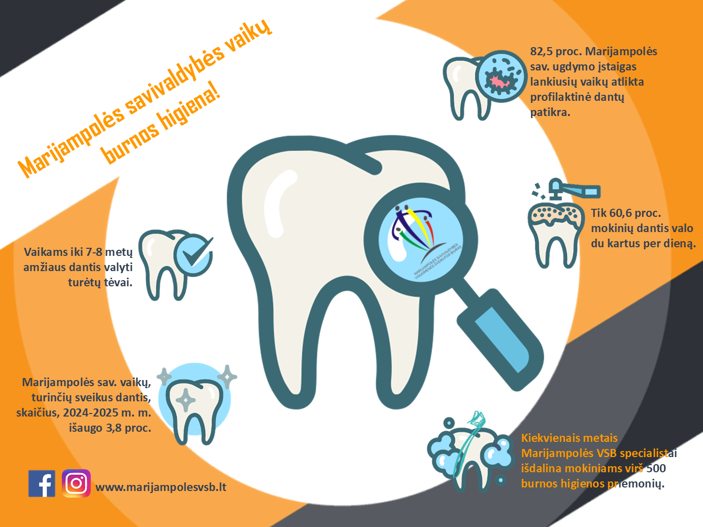 „Reguliarus ir taisyklingas dantų valymas yra vienas svarbiausių burnos sveikatos veiksnių, bet vien šių įpročių nepakanka. Burnos sveikatai didelę įtaką turi ir tinkama mityba, saikingas cukraus vartojimas, reguliari profilaktinė patikra ir ankstyvas burnos ligų nustatymas. Todėl svarbu, kad burnos higienos įpročiai būtų formuojami dar vaikystėje, o vėliau – nuosekliai palaikomi“, – sako Higienos instituto Visuomenės sveikatos inovacijų centro Sveikatos stiprinimo skyriaus vadovė Aušrinė Smaleckaitė. Anot jos, prie to reikšmingai prisideda savivaldybėse veikiantys visuomenės sveikatos biurai, kurie organizuoja burnos higienos užsiėmimus vaikams ir suaugusiesiems. 2025 m. duomenimis, tokiuose užsiėmimuose dalyvavo daugiau nei 211 tūkst. mokinių ir apie 6,5 tūkst. suaugusiųjų.